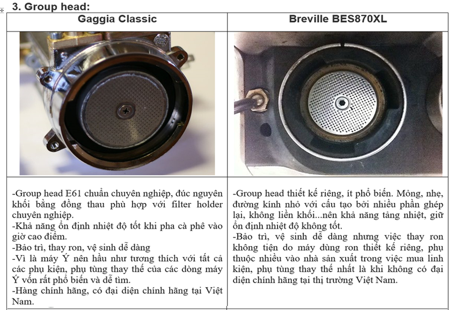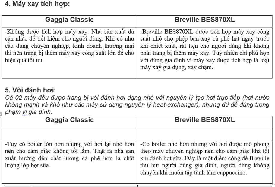 Những ưu điểm vượt trội của máy pha cà phê Gaggia Classic về độ bền và chất lượng cà phê hay sự tiện dụng của Breville BES870XL đã được chia sẻ trong nhiều bài viết trước đây nên trong khuôn khổ bài viết này chúng tôi chỉ tập trung vào việc phân tích kỹ các yếu tố tạo nên sự khác biệt giữa 02 dòng máy nổi tiếng này để từ đó người dùng chọn được dòng máy phù hợp nhất với mục đích và yêu cầu kinh doanh của mình.